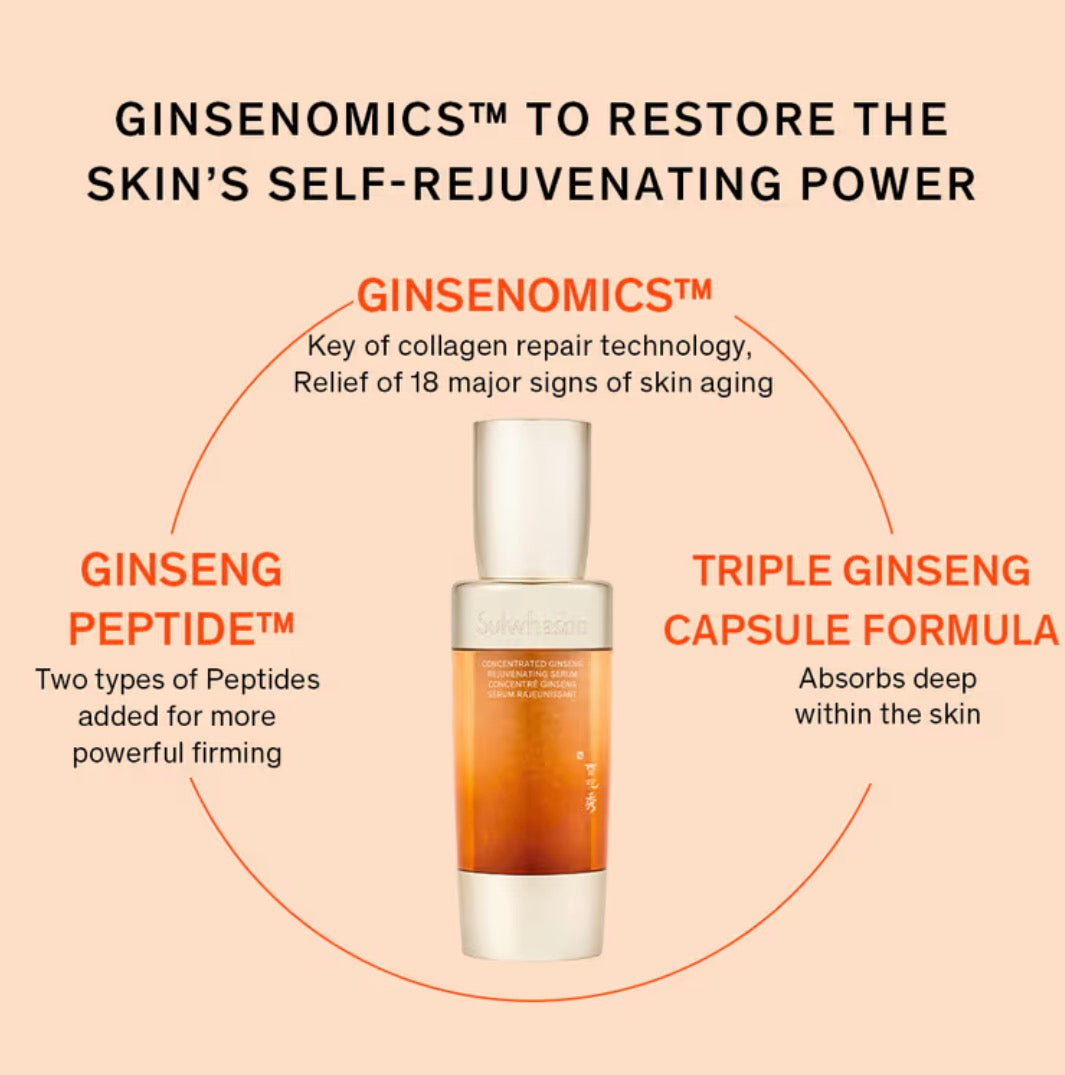 This is a 2024 renewal version of Concentrated Ginseng Rejuvenating Serum. An anti-aging capsule serum that can help reduce fine lines with its moisturizing formula. Contains Triple Ginseng Capsule to aid absorption of Ginsenomics™, which helps improve the firmness of concerned areas.