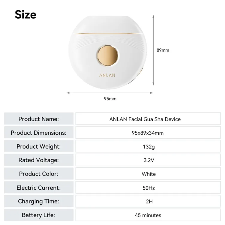 Idéal pour tous les types de peau, le Gua Sha électrique ANLAN est compact, portable et rechargeable. Parfait pour les voyages, il vous aide à redessiner les contours de votre visage, à raffermir vos traits et à obtenir un teint plus lisse et plus lumineux.