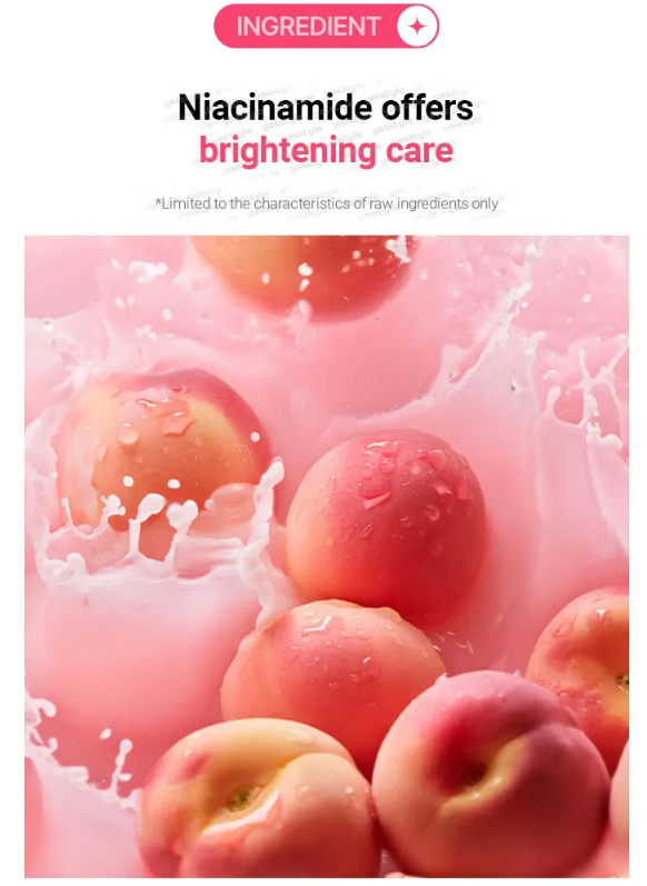 Water, Prunus Persica (Peach) Fruit Water, Glycerin, Potassium Laurate, Cellulose, Potassium Myristate, Acrylates Copolymer, 1,2-Hexanediol, Betaine, Prunus Persica (Peach) Seed Powder, Hydroxyacetophenone, Potassium Hydroxide, Polyquaternium-22, Lactobacillus Ferment, Ethylhexylglycerin, Fragrance, Gardenia Florida Fruit Extract, Sodium Phytate, Dextrin, Niacinamide, Cyanocobalamin, Butylene Glycol, Hydrogenated Lecithin, Centella Asiatica Extract, Ficus Carica (Fig) Fruit Extract, Sodium Hyaluronate, Glyceryl Glucoside, Beta-Glucan, Ceramide NP, Pueraria Lobata Root Extract, Pinus Palustris Leaf Extract, Ulmus Davidiana Root Extract, Oenothera Biennis (Evening Primrose) Flower Extract, Linolenic Acid, Acrylates/C10-30 Alkyl Acrylate Crosspolymer, Ammonium Acryloyldimethyltaurate/Vp Copolymer, Hydroxypropyl Starch Phosphate, Capryloyl Salicylic Acid, Prunus Armeniaca (Apricot) Fruit Extract